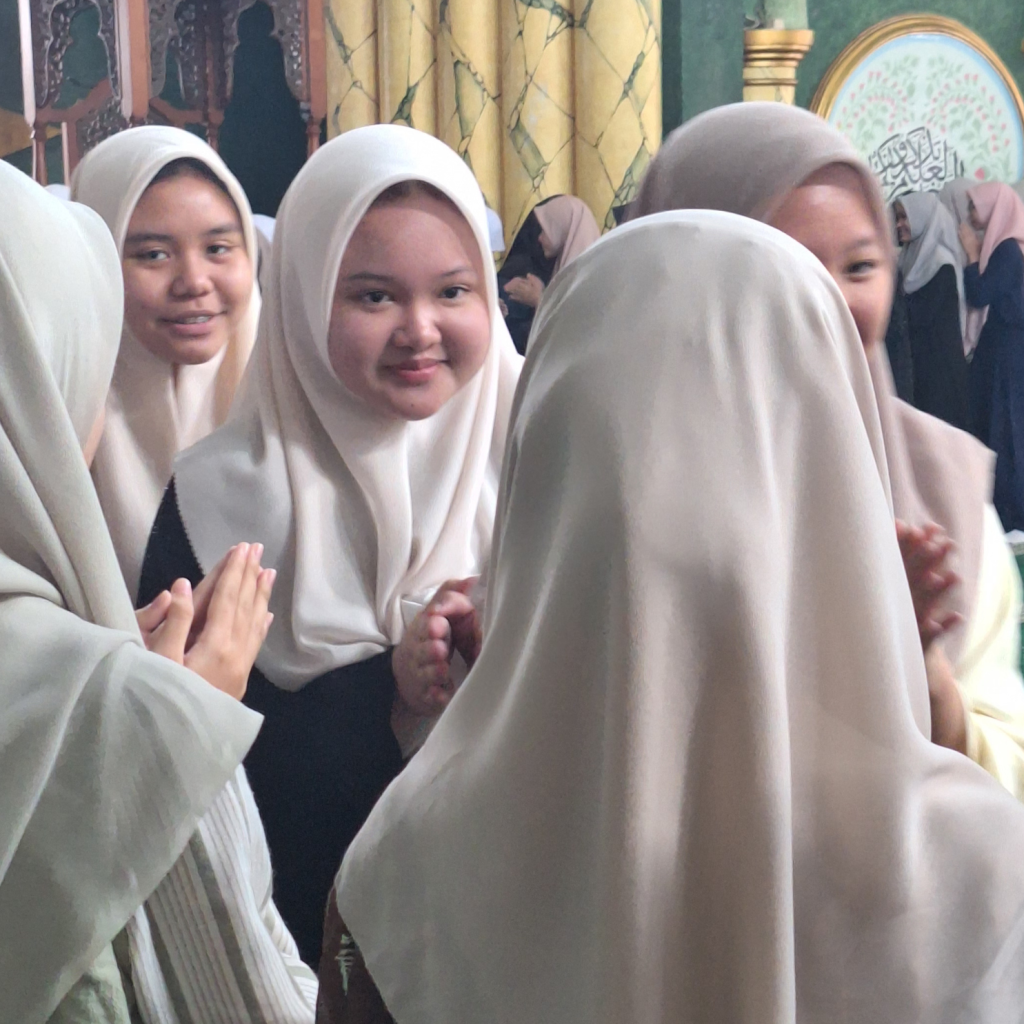 Kegiatan diawali dengan sesi refleksi diri yang dipandu oleh guru, di mana siswa diajak untuk merenungkan perjalanan spiritual selama Ramadhan. Dalam suasana yang khidmat, para siswa diberikan ruang untuk mengingat kembali pentingnya menjaga hati, lisan, serta perbuatan terhadap sesama. Tausiyah yang disampaikan juga menekankan pentingnya memperbaiki hubungan sosial, baik dengan teman, guru, maupun keluarga, sebagai bagian dari implementasi nilai-nilai keislaman. Puncak acara berlangsung dengan prosesi saling memaafkan yang dilakukan secara tertib dan penuh rasa hormat. Berbeda dengan jenjang sebelumnya, siswa SMP melaksanakan sesi ini dengan lebih terstruktur, mencerminkan kedewasaan dalam bersikap dan berinteraksi. Momen tersebut menjadi simbol penguatan karakter, di mana setiap siswa belajar untuk menumbuhkan keikhlasan, empati, serta sikap saling menghargai dalam kehidupan bermasyarakat.