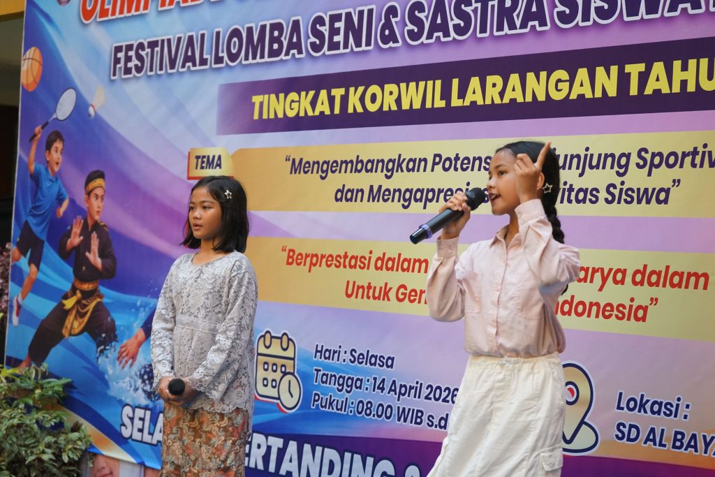 Kegiatan Olimpiade Olahraga Siswa Nasional dan Festival Lomba Seni dan Sastra Siswa Nasional Tahun 2026 di SD Al Bayan Islamic School berlangsung dengan penuh semangat, antusiasme, dan sportivitas yang tinggi dari seluruh peserta didik. Kegiatan ini menjadi wadah bagi siswa untuk mengembangkan potensi diri, baik dalam bidang olahraga maupun seni dan sastra, sekaligus menanamkan nilai-nilai disiplin, kerja keras, serta kepercayaan diri. Seluruh rangkaian kegiatan dirancang secara edukatif dan menyenangkan, sehingga siswa tidak hanya berkompetisi, tetapi juga belajar menghargai proses dan kebersamaan.